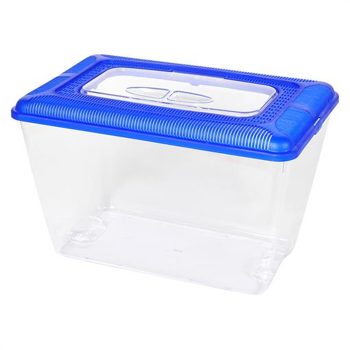 Пластиковый прозрачный короб имеет крышку с отверстиями для проветривания, дверцей для кормления и обслуживания.