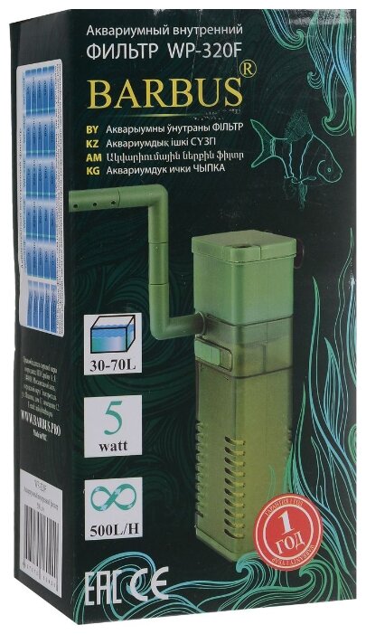 Фильтр BARBUS WP-320F внутренний для аквариума 30-70л