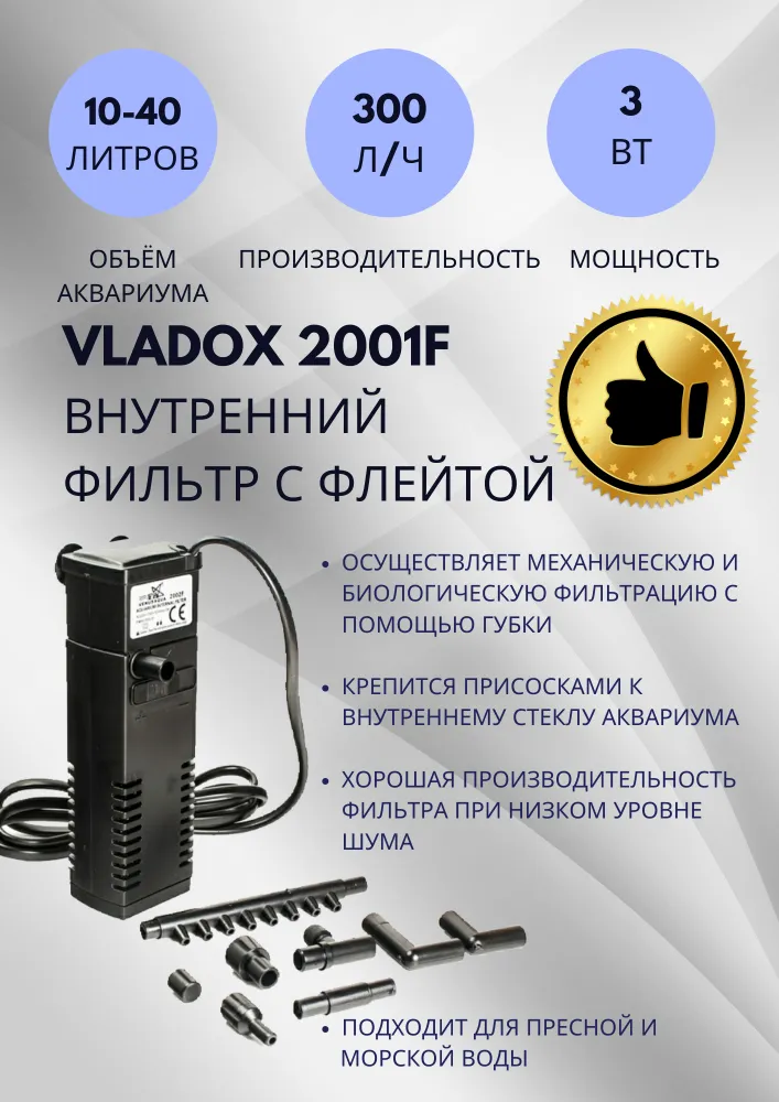 Фильтр VladOx 2001F для аквариума с флейтой, 40-80л