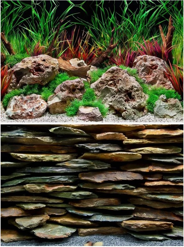 Barbus Каменная стена/Дикая вода - это двусторонний фон для аквариума.