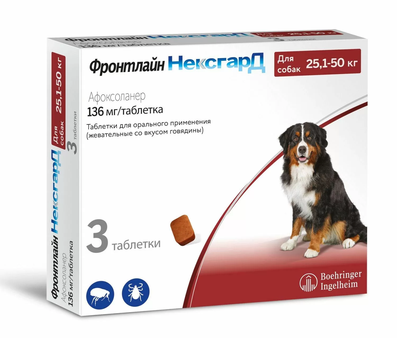 Фронтлайн НексгарД Merial таблетки от блох и клещей для собак 25-50кг, 1таб