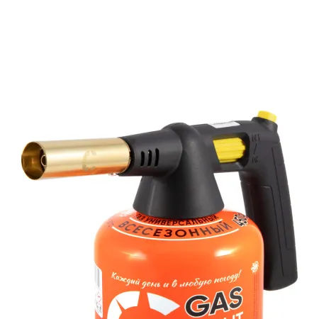 Горелка портативная газовая под резьбовой баллон «Следопыт», с пьезоподжигом - это компактный газовый прибор для использования в качестве направленного источника пламени с факельной структурой и температурой нагрева до 1800 °C. Данная модель предназначена для резьбовых баллонов и оборудована газогенераторной трубкой, что позволяет использовать горелку под различными углами и при более низких температурах. Основные ОСОБЕННОСТИ и ПРЕИМУЩЕСТВА газовой горелки «Следопыт GTP-S06»: • Пьезоэлектрический розжиг. Автоматический розжиг пламени при нажатии кнопки; • Компактный и эргономичный дизайн, при весе всего 230 грамм. Горелка портативная газовая подходит для ИСПОЛЬЗОВАНИЯ: В БЫТУ и ПРОИЗВОДСТВЕ: • для прогрева замерзших жидкостей в водопроводных и прочих магистралях; • для работы с медными припоями; • для удаления старой краски; • для работы с грибком и уничтожения насекомых, обитающих в скрытых полостях; • для придания поверхностям деревянных изделий декоративного вида. При ПРИГОТОВЛЕНИИ ПИЩИ: • для розжига мангала, камина, гриля без использования химических средств; • для обработки тушек птиц и животных; ХАРАКТЕРИСТИКИ: • мощность - 1,2 кВт • температура пламени - 1800 °С • вес - 230 г • габаритные размеры - 260*65*130 мм • расход газа - 80 г/час • пьезоэлектрический розжиг - есть