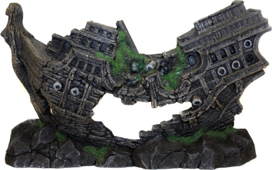 Декорация для аквариума DEKSI Корабль №521 39х7х24 см для оформления в художественном стиле с темой "Затонувший корабль". Внутри аквариумных гротов "Корабли" рыбки найдут себе укрытие, даже небольшие обитатели аквариума, выглядывая из отверстий грота, будут казаться огромными подводными чудовищами, поселившимися в останках кораблекрушения. Односторонние декоративные элементы DEKSI устанавливаются к задней стенке аквариума.