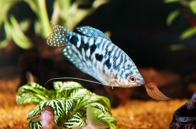 Кормить рыбок гурами необходимо несколько раз в день таким количеством корма, который может быть полностью съеден рыбками за несколько минут.