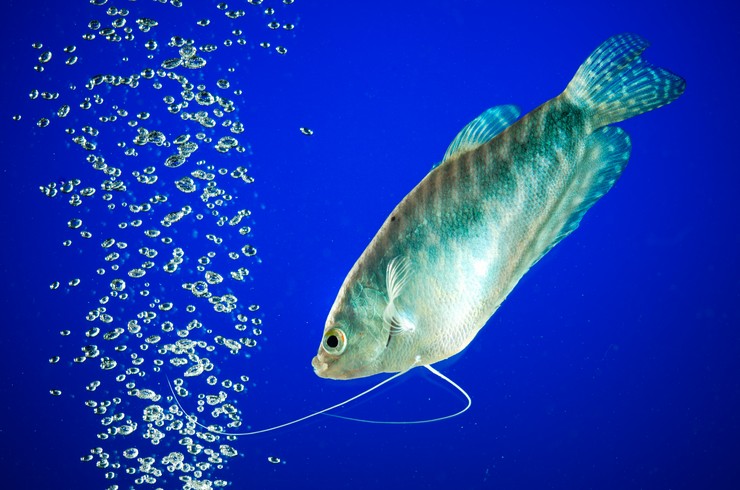 В переводе с яванского языка, «гурами» — дословно «рыба, высовывающая из воды свой нос». И это название, как никакое другое, подчеркивает основную особенность этих рыбок. Все дело в том, что у гурами имеется специальный орган дыхания – жаберный лабиринт. Раньше считали, что этот орган позволяет запасать гурами воду и таким образом переживать засуху или перемещаться между пересыхающими водоемами. Но на самом деле, лабиринт позволяет рыбкам гурами заглатывать и использовать для дыхания атмосферный воздух. Поэтому им часто приходится подниматься к поверхности воды и делать живительный глоток, при этом, если доступ к поверхности воды перекрыт, рыбка может погибнуть.