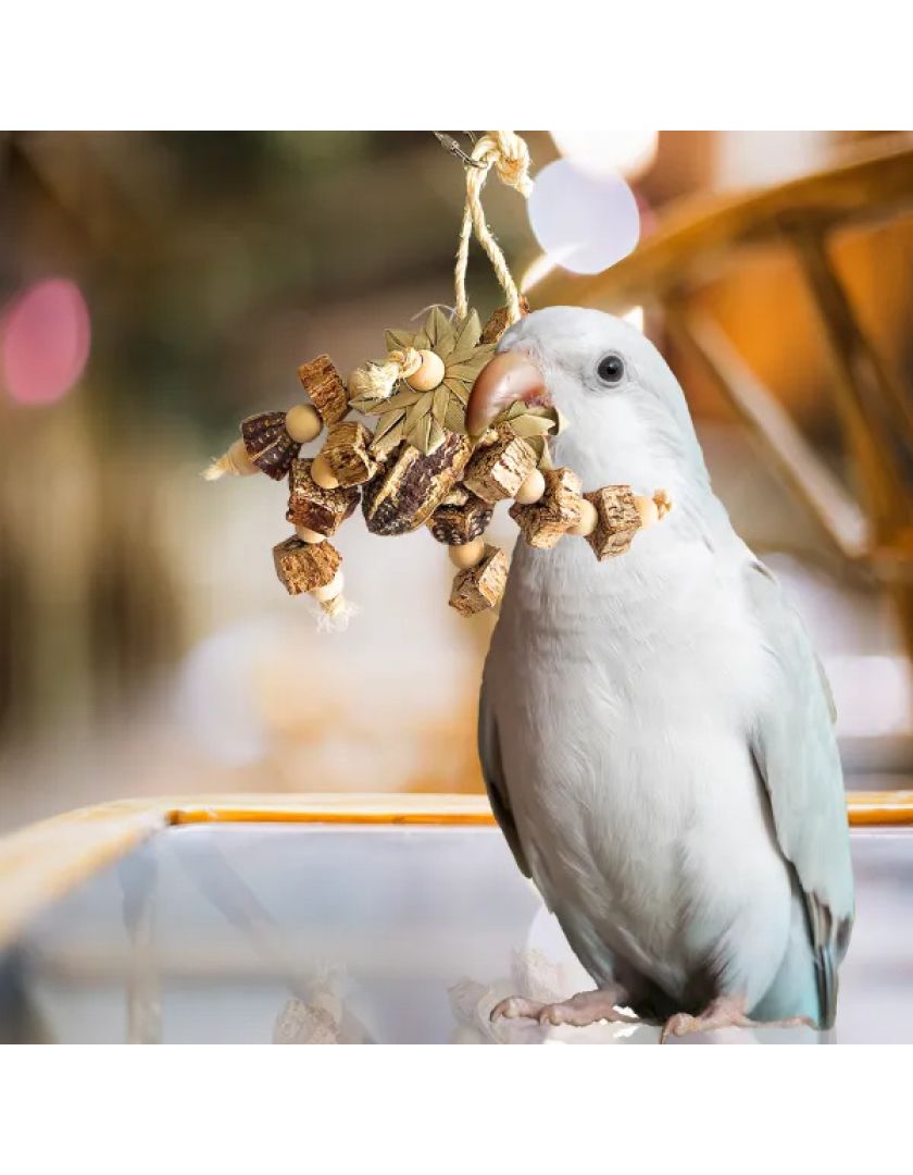 Игрушка-грызунок изготовлена из 100% натуральных лесных материалов, которые побуждают вашего питомца измельчать, жевать, добывать корм и прихорашиваться.