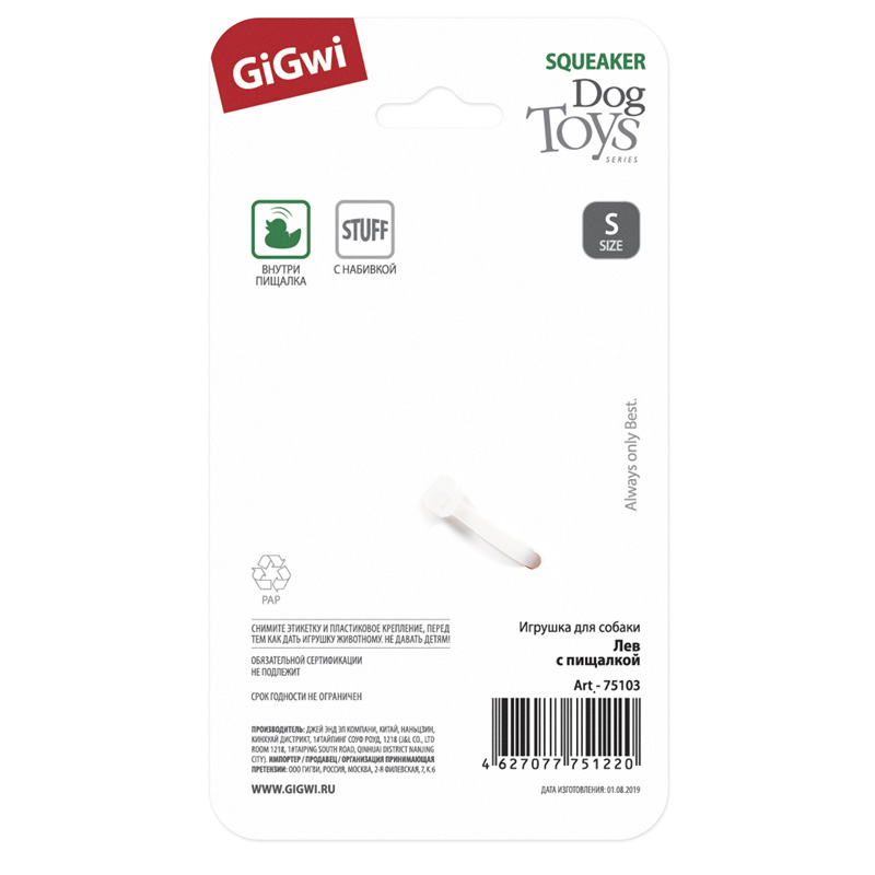 Главная Каталог Зоотовары Игрушки для животных Игрушка Gigwi PLUSH FRIENDZ для собак Лев с пищалкой, 10см
