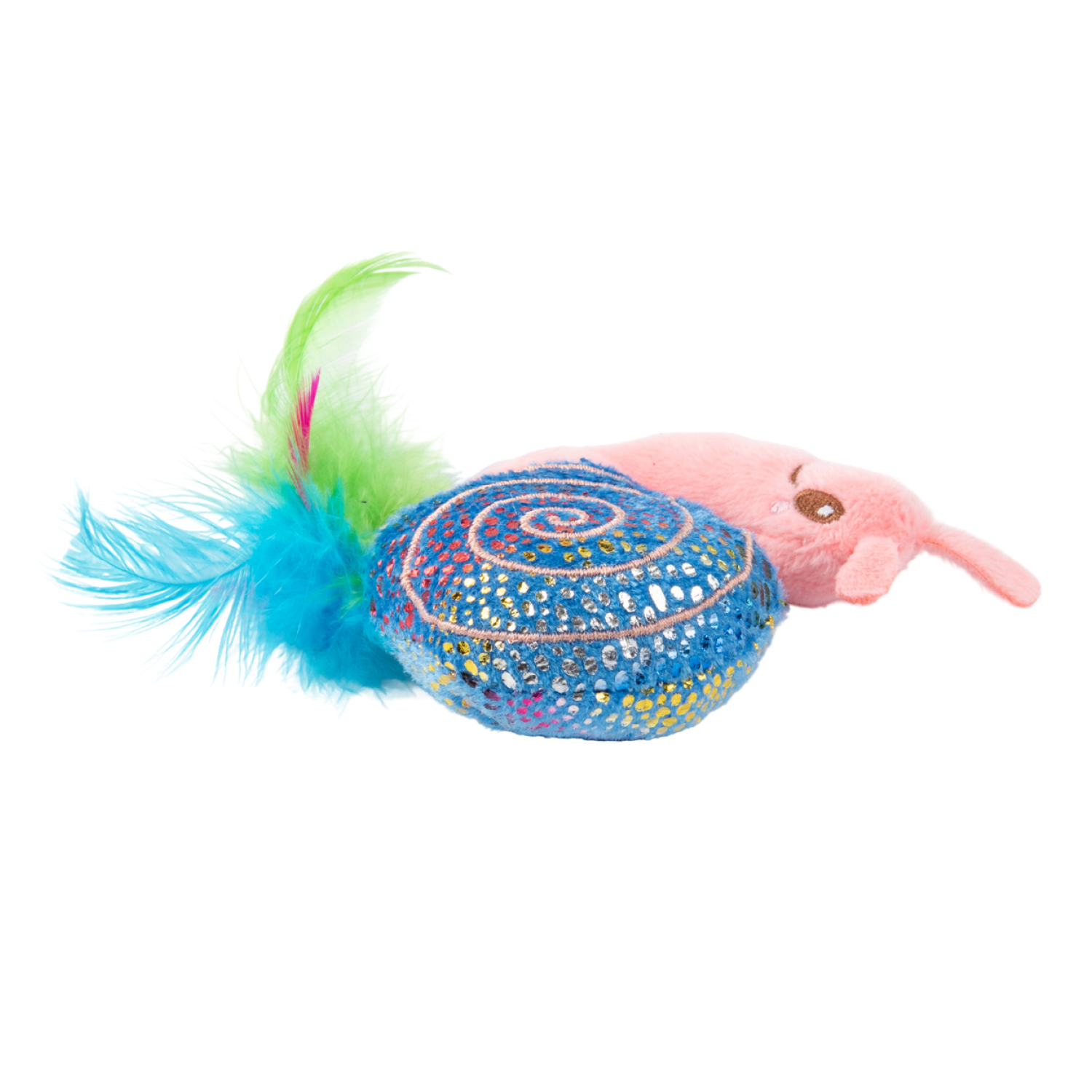 Игрушка Mr.Kranch для кошек"Улитка"с кошачьей мятой и перышками,розовая,18см