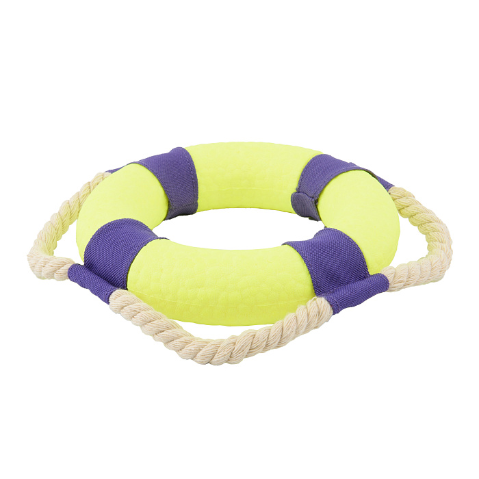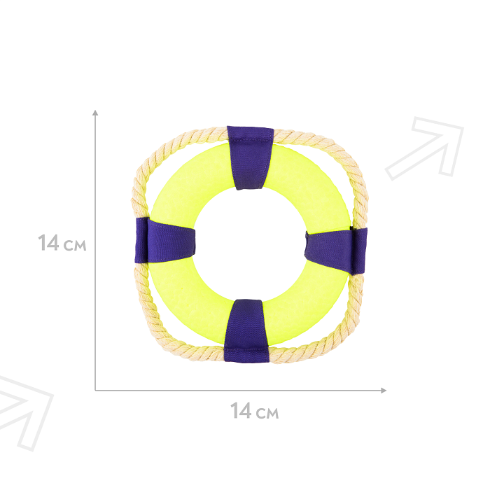 Игрушка Mr.Kranch для собак Кольцо для собак – не просто игрушка, а настоящий многофункциональный тренировочный снаряд. Кольцо изготовлено из комбинцаии легкого, эластичного полиуретана и прочного хлопкового каната. Полиуретан известен своей безопасностью, не имеет запаха и способен выдержать высокие нагрузки. Натуральный хлопковый помогает профилактировать образование зубного налета и камня. Идеальный компаньон для совместных игр в перетяжку, для упражнений на воде и для апортировки Диаметр: 14см