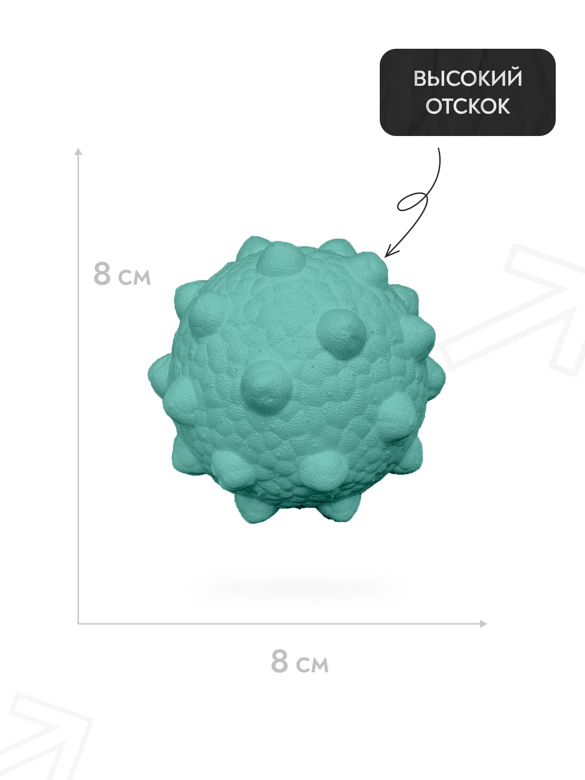 Mr.Kranch Игрушка для собак Мяч с шипами, неоновая голубая — выполнен из безопасного термопластичного полиуретана. При дальнем броске мячик, за счёт своей уникальной формы, может немного изменять траекторию полёта, добавляя азарта в игру.