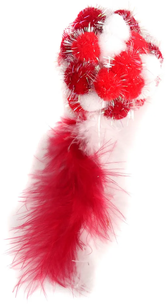 Игрушка Petpark Мяч Пон-Пон для кошек с перьями Красный, 24см