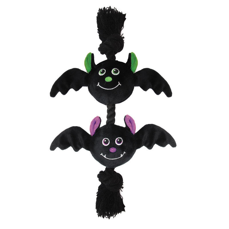 Забавная игрушка для собак "Летучие мыши" несомненно привлечет внимание питомцев и всех окружающих своим необычным дизайном! Головы мышей с "пищалкой" внутри выполнена из мягкого плюша, а крепкая веревка- из хлопка. Прочная и функциональная, такая игрушка отлично подходит для дрессировки и натаскивания собак, которые так любят грызть и трепать мягкие игрушки, кусать и носить их в зубах. Игрушка "Летучие мыши" доставит огромную радость собакам и их заботливым владельцам и послужит отличным подарком на Хэллоуин.