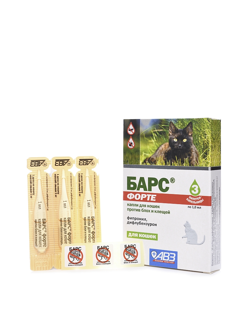 Показания к применению: БАРС® форте капли для кошек против блох и клещей назначают кошкам с 8-недельного возраста с лечебной и профилактической целью при энтомозах, вызванных вшами, блохами, власоедами, и нотоэдрозе (чесотка), поражают иксодовыми клещами, а также для предотвращения нападения эктопаразитов на животных.