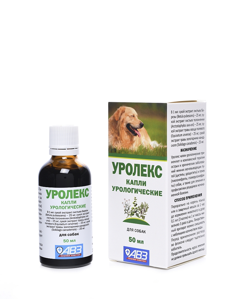 Главная Каталог Ветаптека Для почек и мочеполовой системы Капли урологические Уролекс АВЗ при мочекаменных заболеваниях для собак крупных пород, 50мл