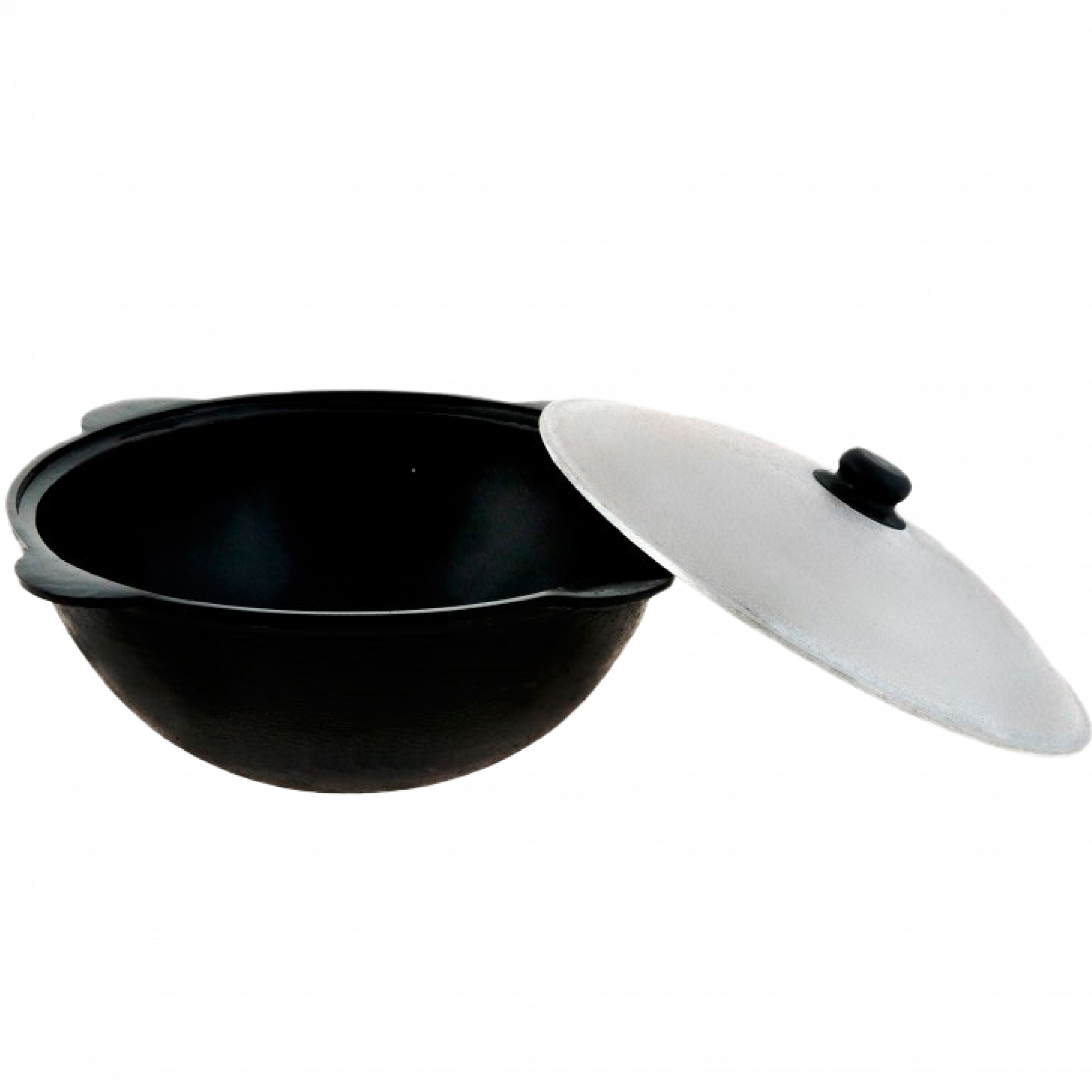 Казан узбекский чугунный с алюминиевой крышкой (плоское дно), 10л