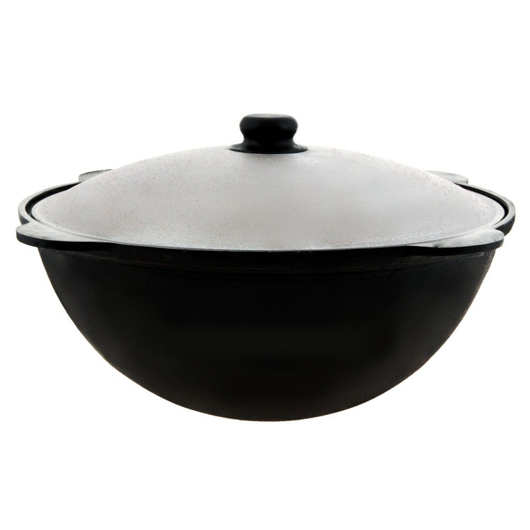 Главная Каталог Туристические товары Мангалы, решетки, средства для розжига Казан узбекский чугунный с алюминиевой крышкой (плоское дно), 8л