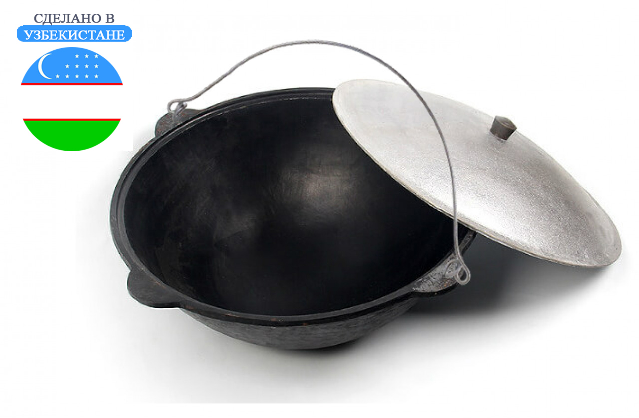 Главная Каталог Туристические товары Мангалы, решетки, средства для розжига Казан узбекский чугунный с алюминиевой крышкой, с подвесной ручкой (плоское дно), 8л