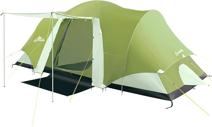 Палатка для кемпинга ArcadiVille на 8 человек, водонепроницаемая и ветрозащитная семейная палатка для кемпинга, отдыха на природе и путешествий, простая установка, съемный полностью закрывающий тент от дождя, разделительная штора, тамбур и сумка для переноски (зеленая)