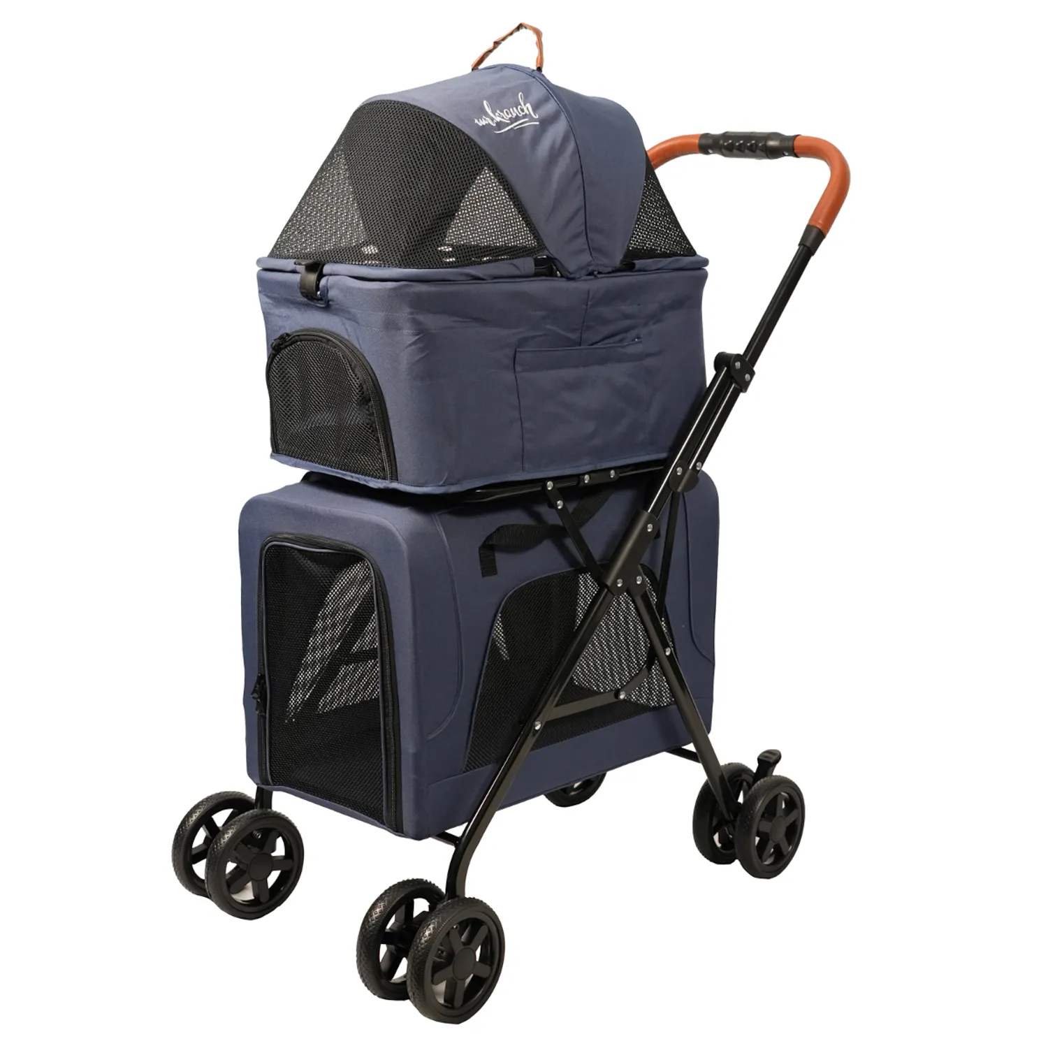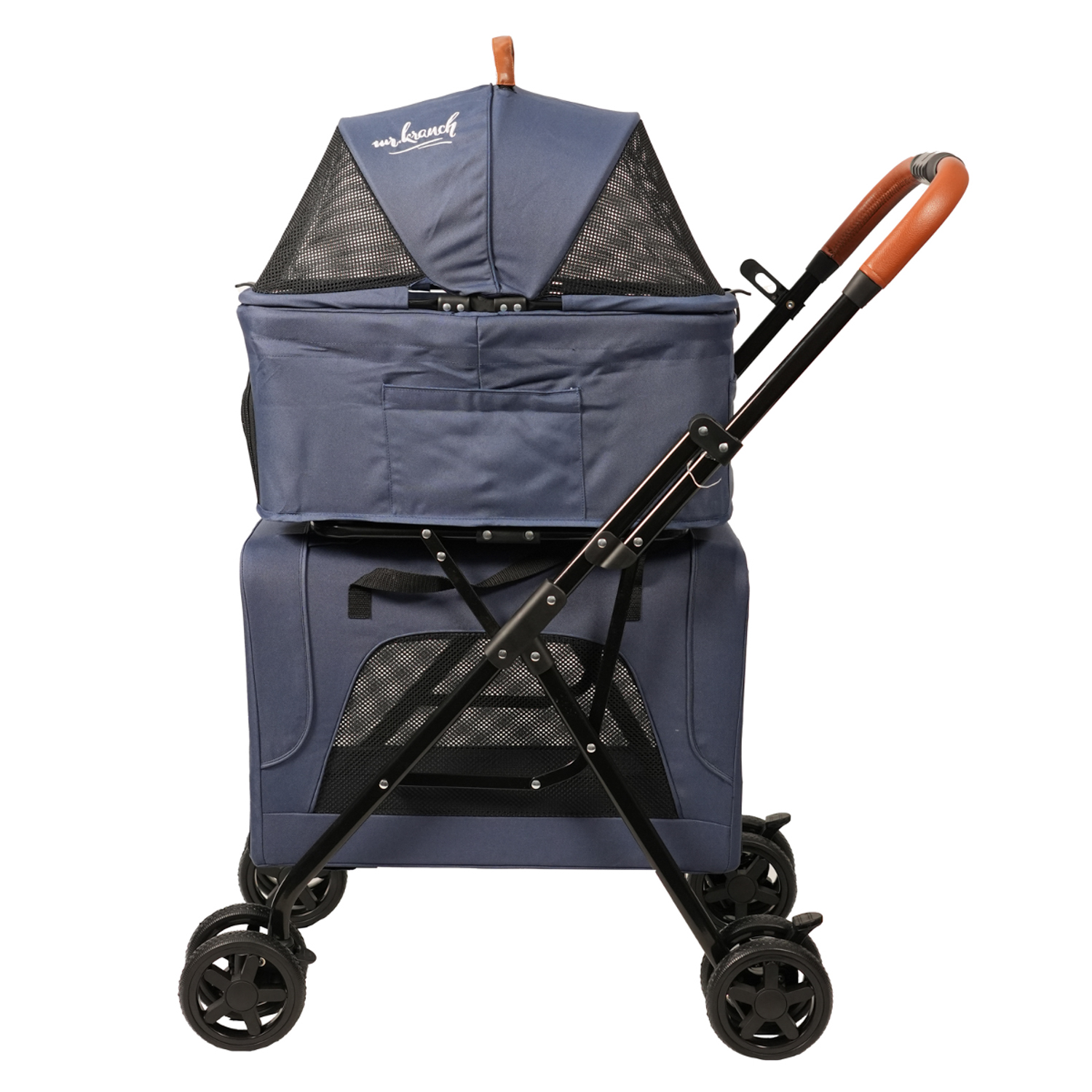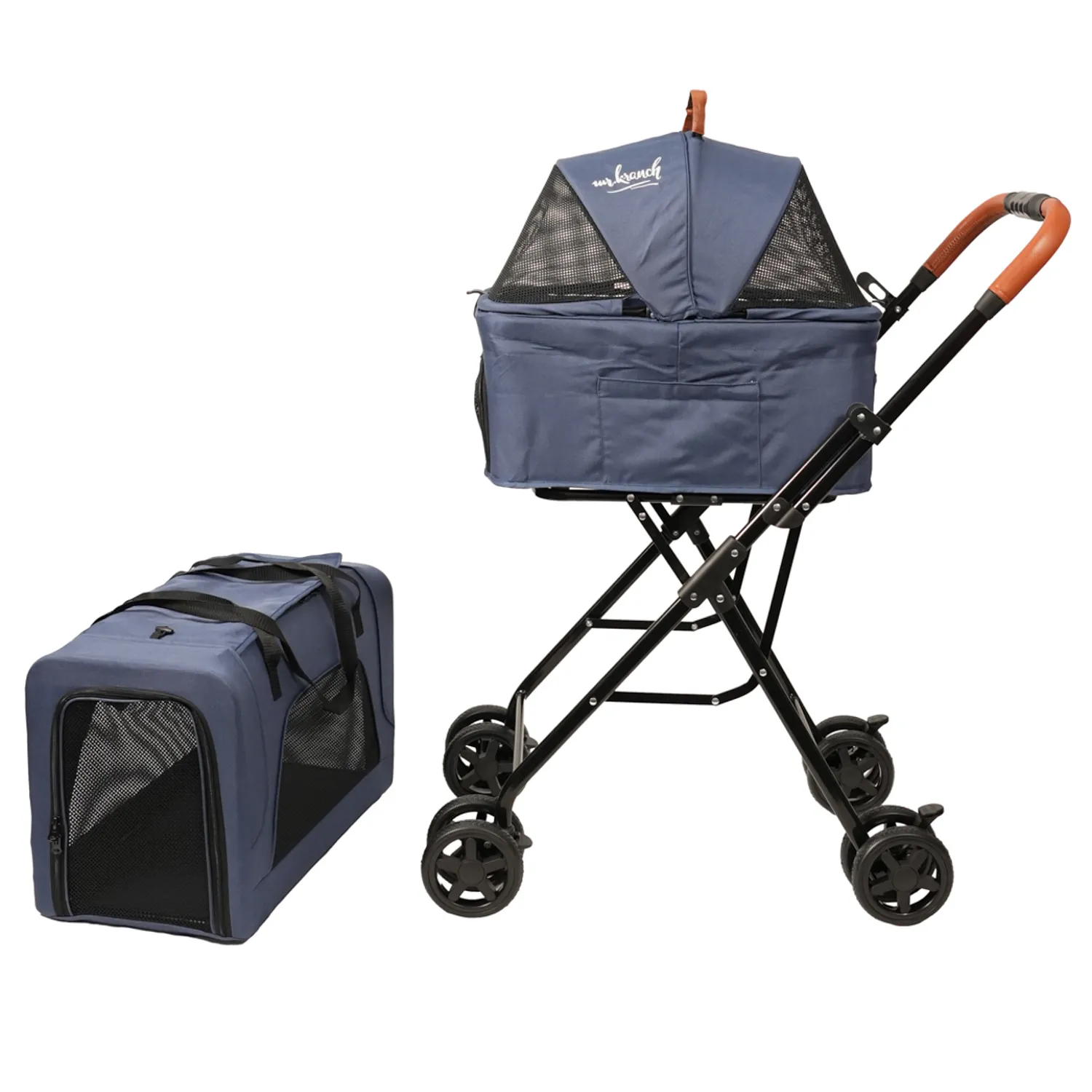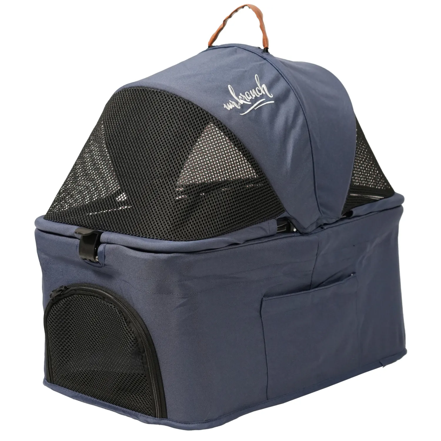 Коляска Mr.Kranch по-настоящему многофункциональна: ей можно пользоваться по прямому назначению, также и использовать как переноску. Обе корзины отсоединяются. Так вы получите полноценные два товара в одном: одну корзину возможно оставить на шасси, а другую в постоянно отсоединенном виде использовать как переноску. Внутри предусмотрен ремень безопасности для питомца.