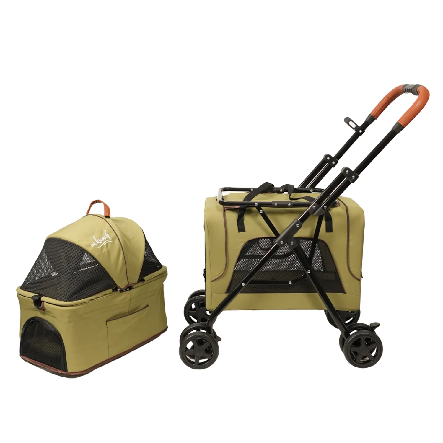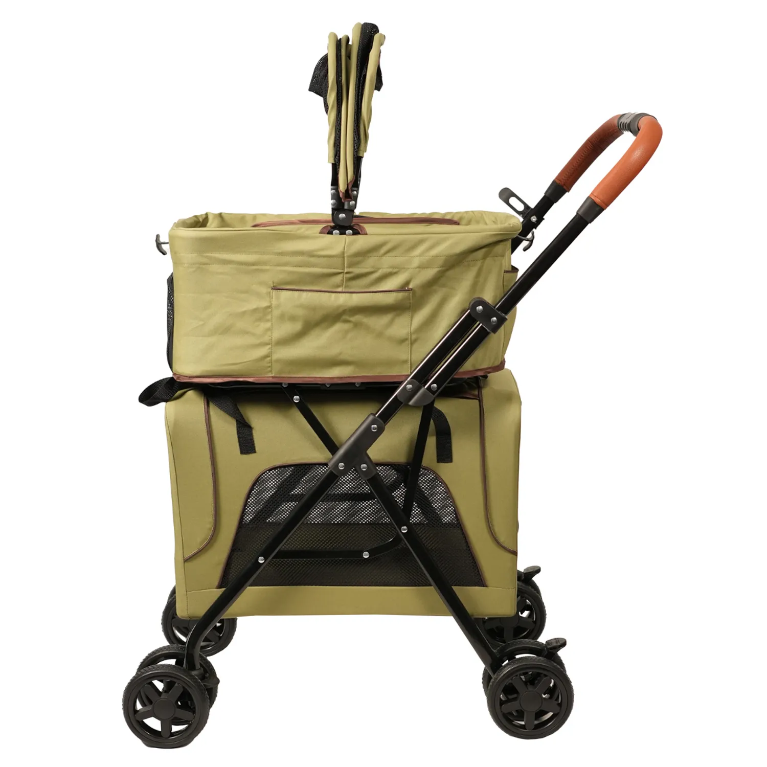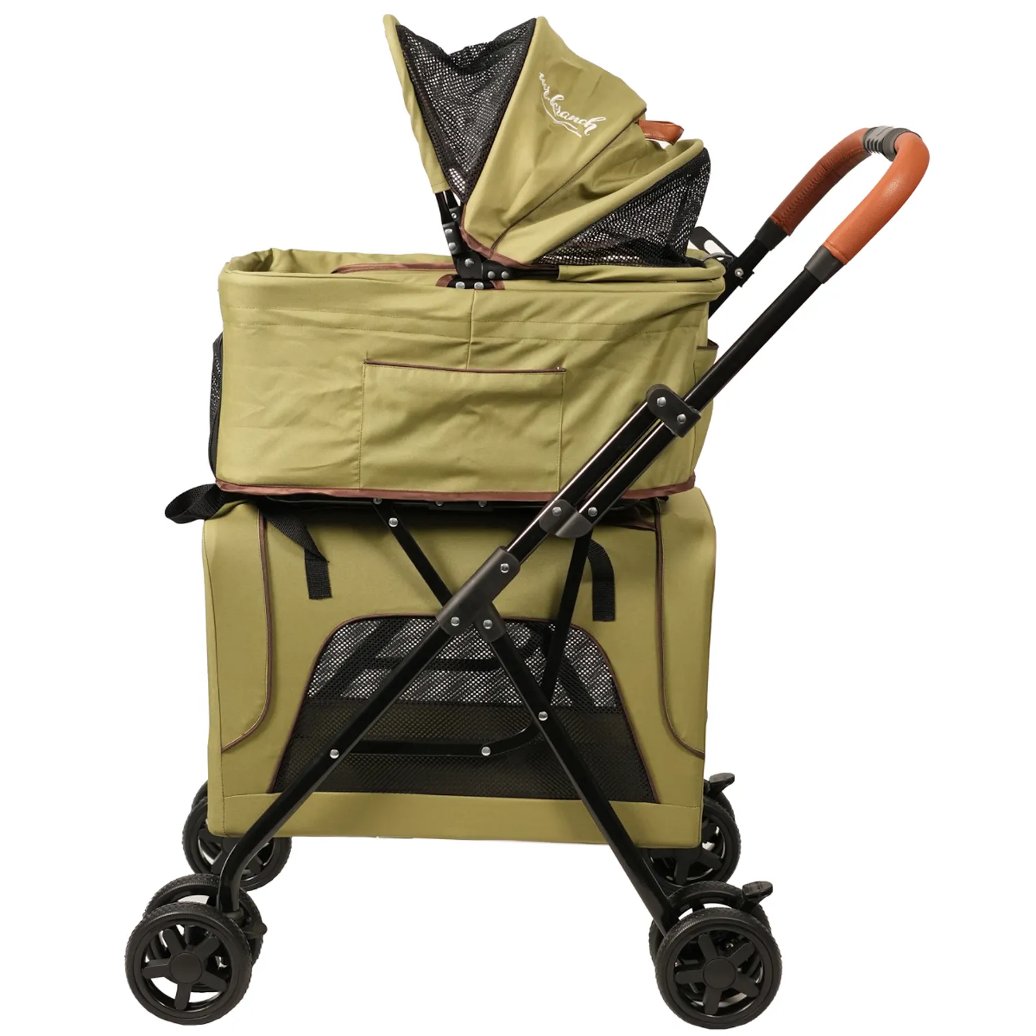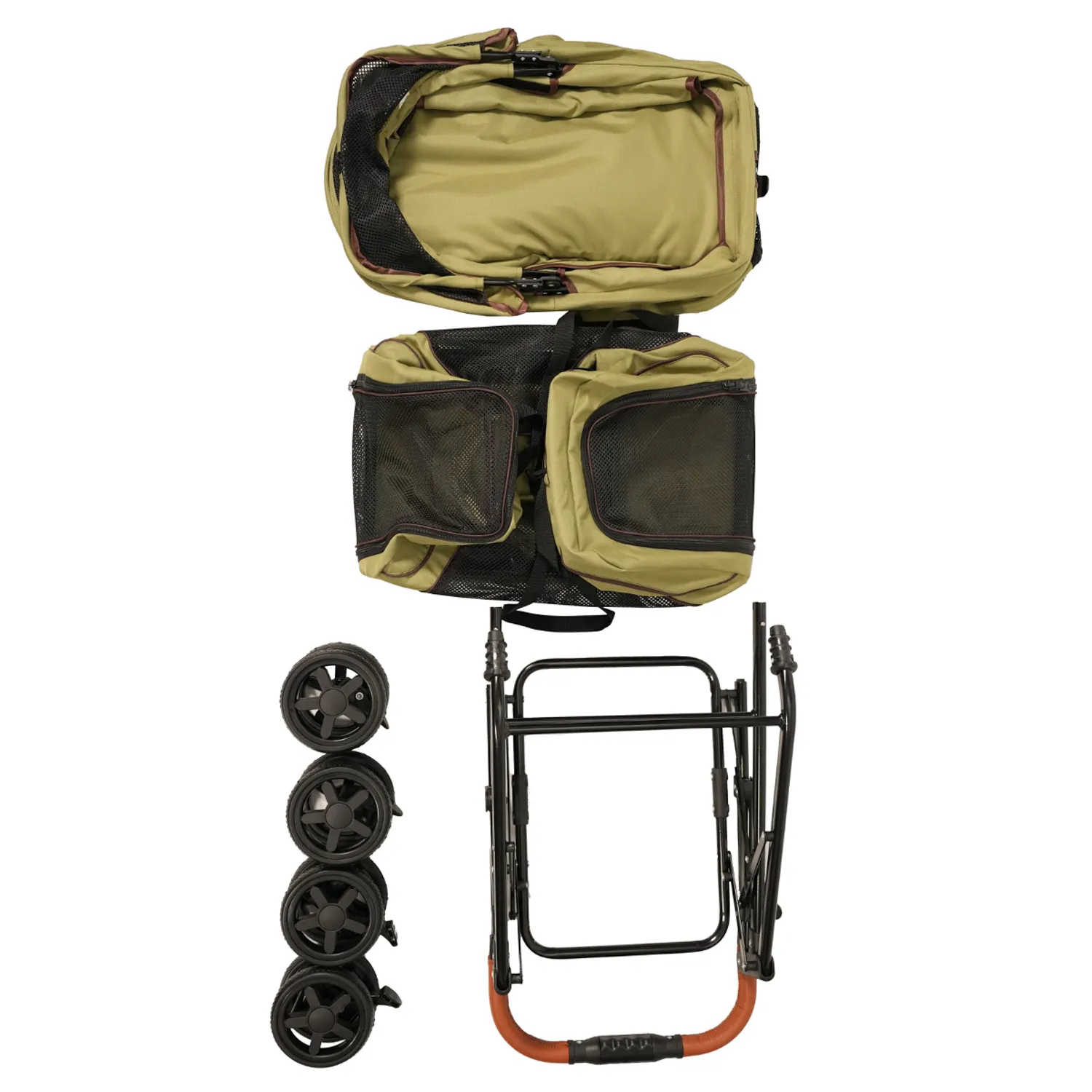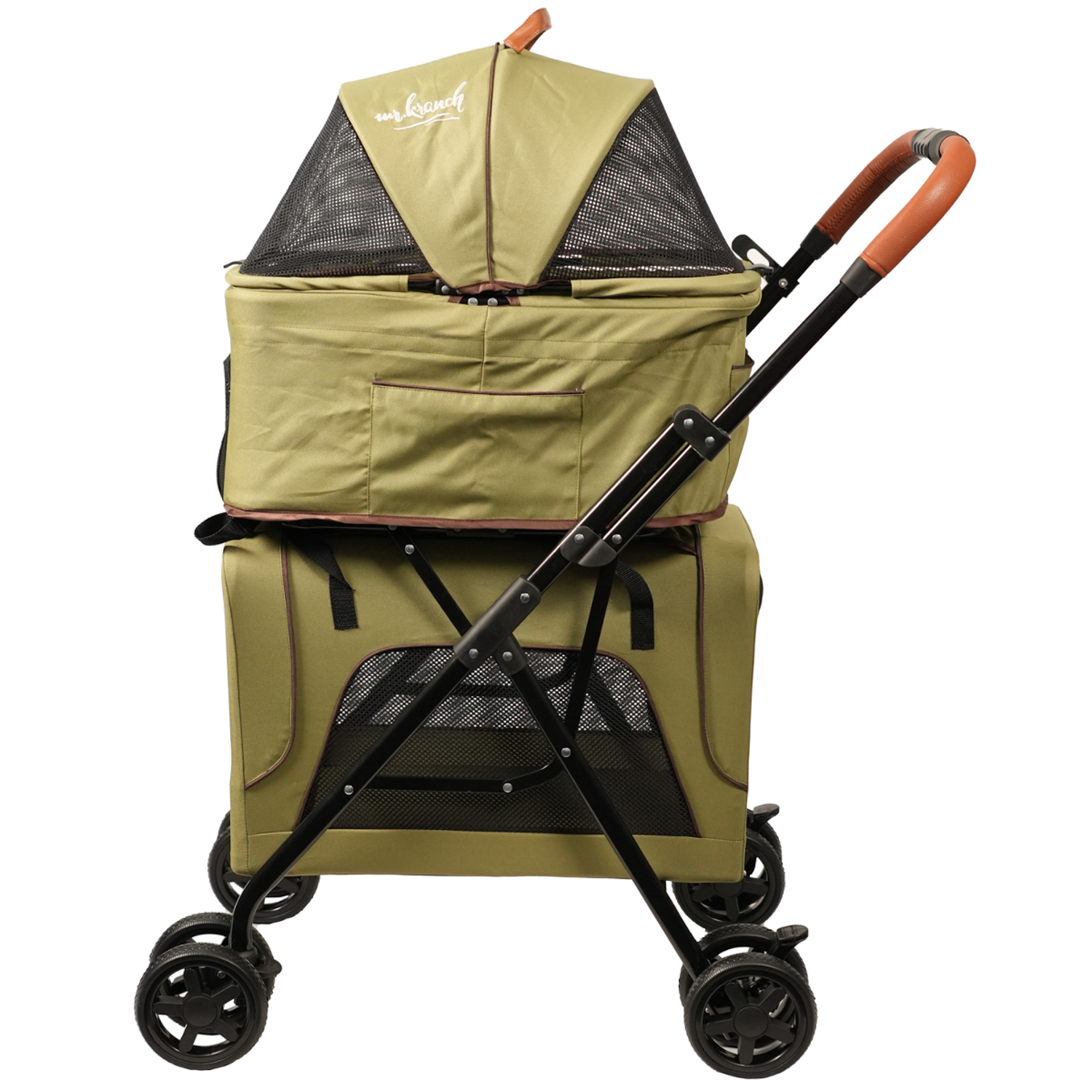 Коляска прогулочная Mr.Kranch двойная повышенной проходимости для собак и кошек 10+10кг, Оливковая