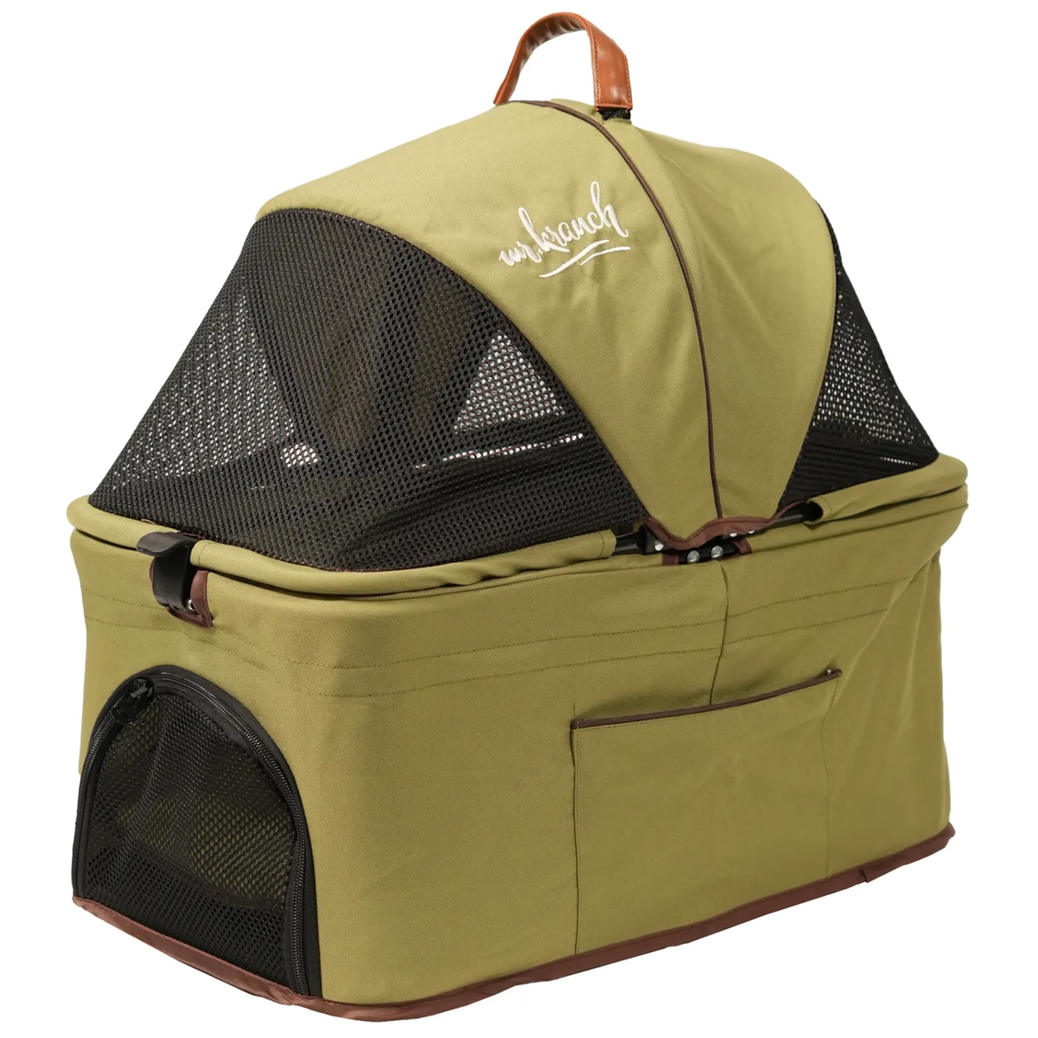 Коляска Mr.Kranch по-настоящему многофункциональна: ей можно пользоваться по прямому назначению, также и использовать как переноску. Обе корзины отсоединяются. Так вы получите полноценные два товара в одном: одну корзину возможно оставить на шасси, а другую в постоянно отсоединенном виде использовать как переноску. Внутри предусмотрен ремень безопасности для питомца.