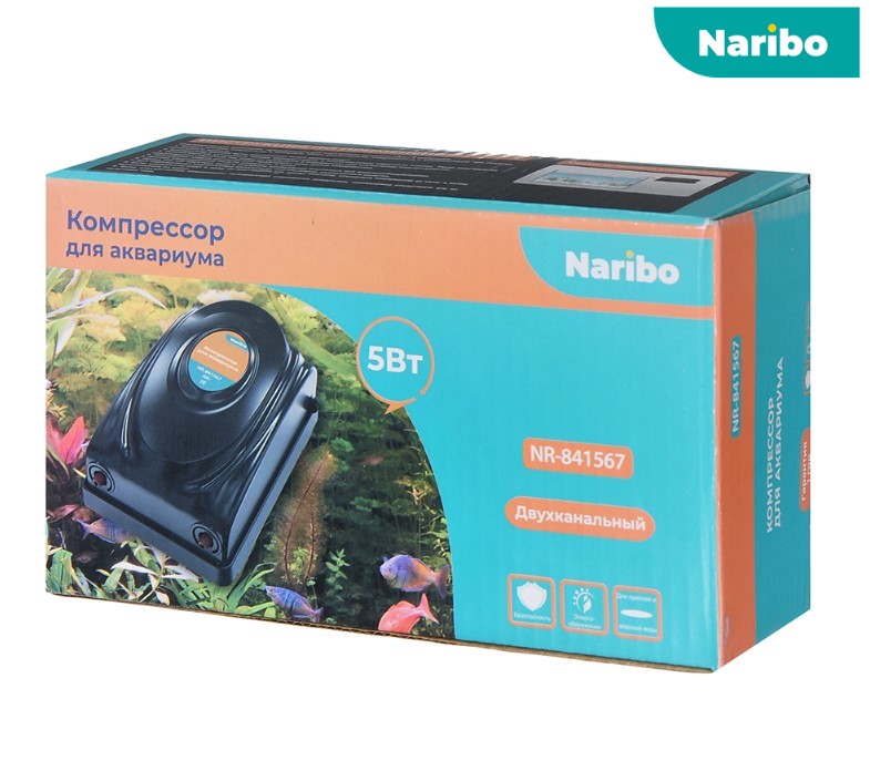 Компрессор Naribo для аквариума двухканальный регулируемый 250–450л, 2*4 л/мин, 5Вт