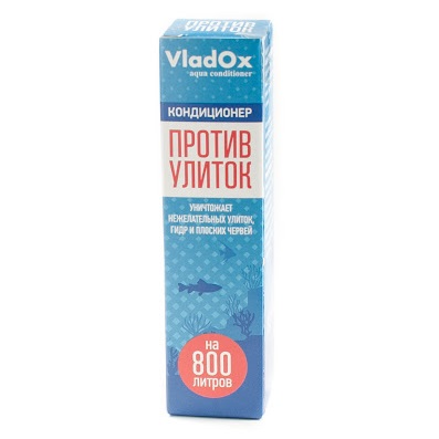 Кондиционер VladOx Против улиток предназначен для выведения из аквариума улиток, гидр, червей и пиявок в пресноводных аквариумах.