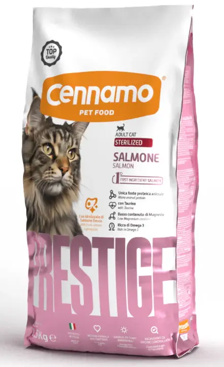 Cennamo Prestige Sterilized Cat (Лосось) — сухой корм для стерилизованных взрослых кошек на основе лосося, как единственного источника животного белка.