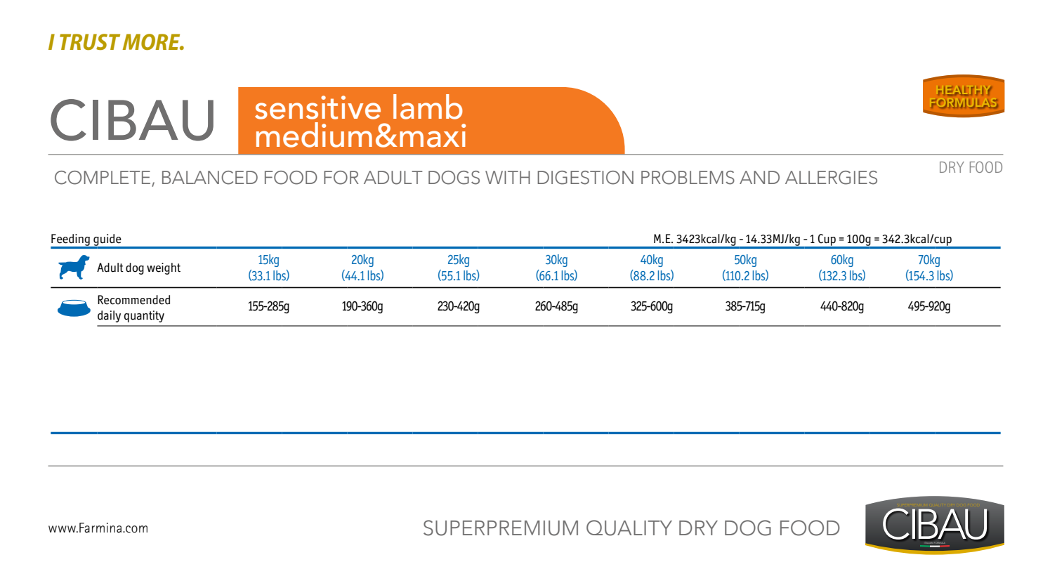 Корм в развес Farmina Cibau Sensitive Lamb MEDIUM / MAXI для взрослых собак средних и крупных пород с чувствительным пищеварением с Ягнёнком и рисом, 1кг