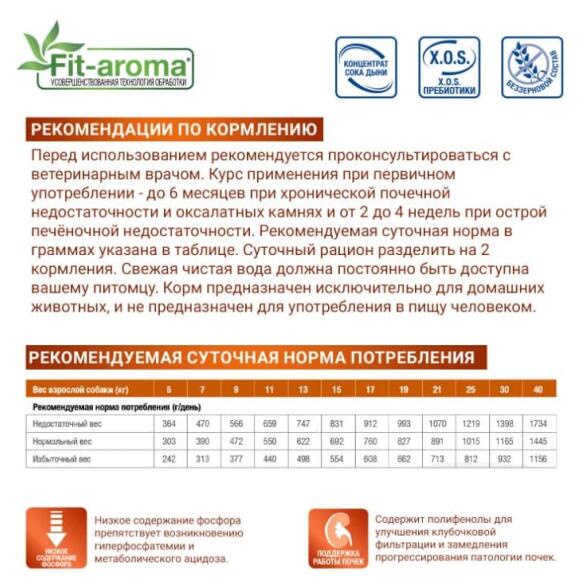 РЕКОМЕНДАЦИИ ПО КОРМЛЕНИЮ: Рекомендуется проконсультироваться с ветеринарным специалистом перед переходом на новый корм и увеличением периода кормления. Свежая чистая вода должна постоянно быть доступна вашему питомцу. Рекомендуемая продолжительность использования от 2 до 4 недель (острая почечная недостаточность), на начальном этапе до 6 месяцев (хроническая почечная недостаточность и оксалатные камни). Рекомендуемая суточная норма потребления в граммах указана в таблице. Суточный рацион разделить разделить на 2 кормления. Свежая чистая вода должна постоянно быть доступна вашему питомцу.