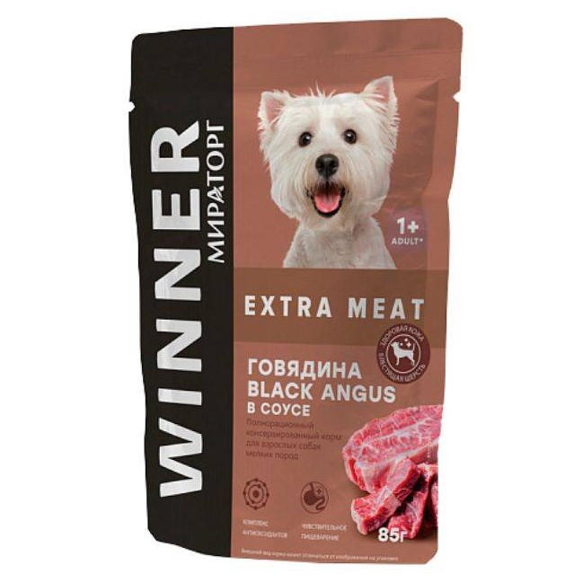 85гр Влажный корм Мираторг Extra Meat для взрослых собак мелких пород, соус с Говядиной