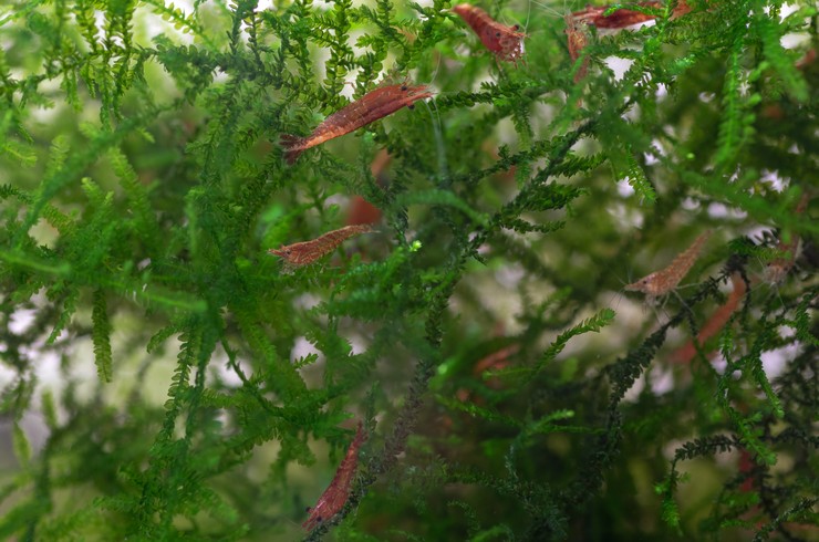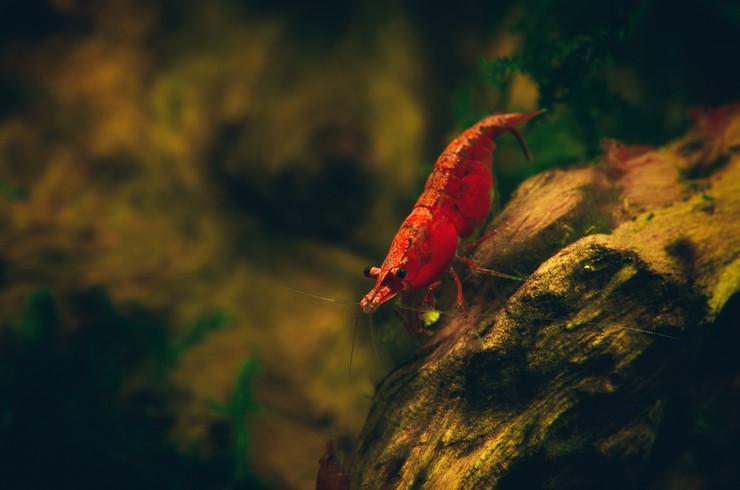 Грунт в аквариуме лучше использовать мелкой фракции 0,5 — 1,5 мм. Должна быть организована фильтрация и аэрация. Желательно поместить в аквариум корягу, обрастив ее мхом: древесина служит пищей для только что вылупившихся креветок, а мох – дополнительным укрытием.