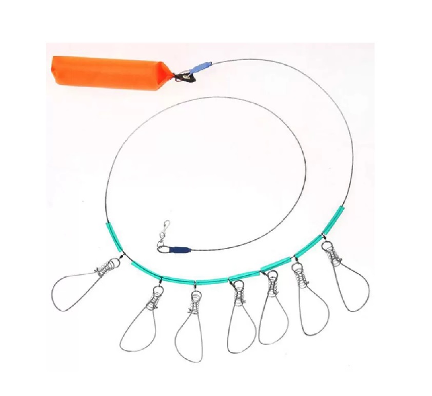 Кукан рыболовный с поплавком (метал. трос, 7 карабинов)