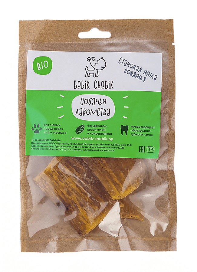 Лакомства "Бобик-Снобик" для собак, становая жила говяжья, 35 гр.