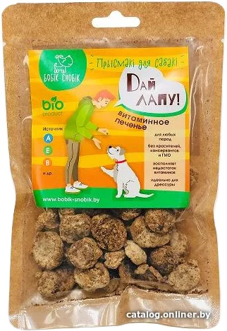 Печенье из натуральных ингредиентов, является прекрасным лакомством для собак, и идеально подходит для дрессуры. Позволяет поощрять собаку продуктом, не выбивающимся из привычного рациона - во избежание провокации аллергических реакций.