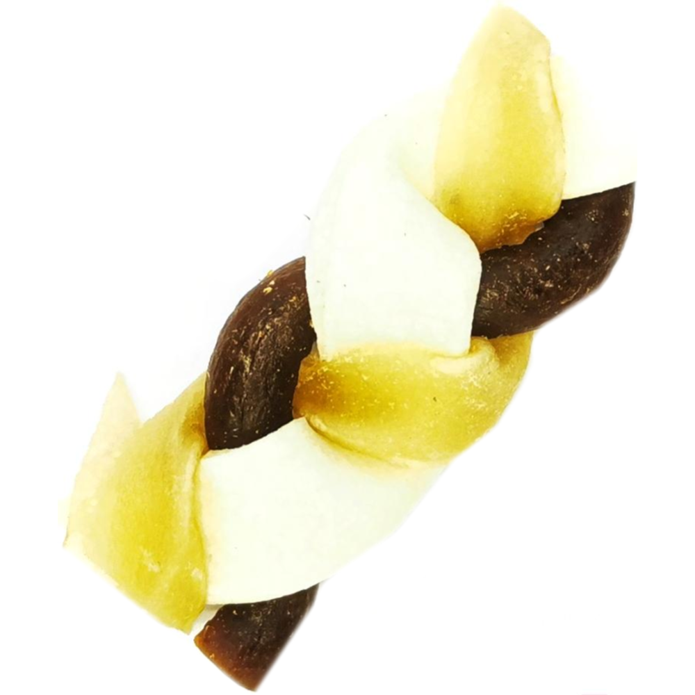 Косичка изготовлена из сыромятной и размягченной телячьей кожи и нежной говядины. Не содержит консервантов, красителей, гормонов и антибиотиков.