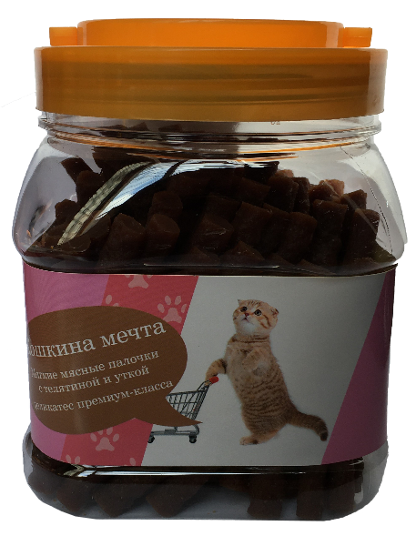 Домашний деликатес "Мягкие мясные палочки телятина и утка" - это натуральное лакомство для взрослых кошек.