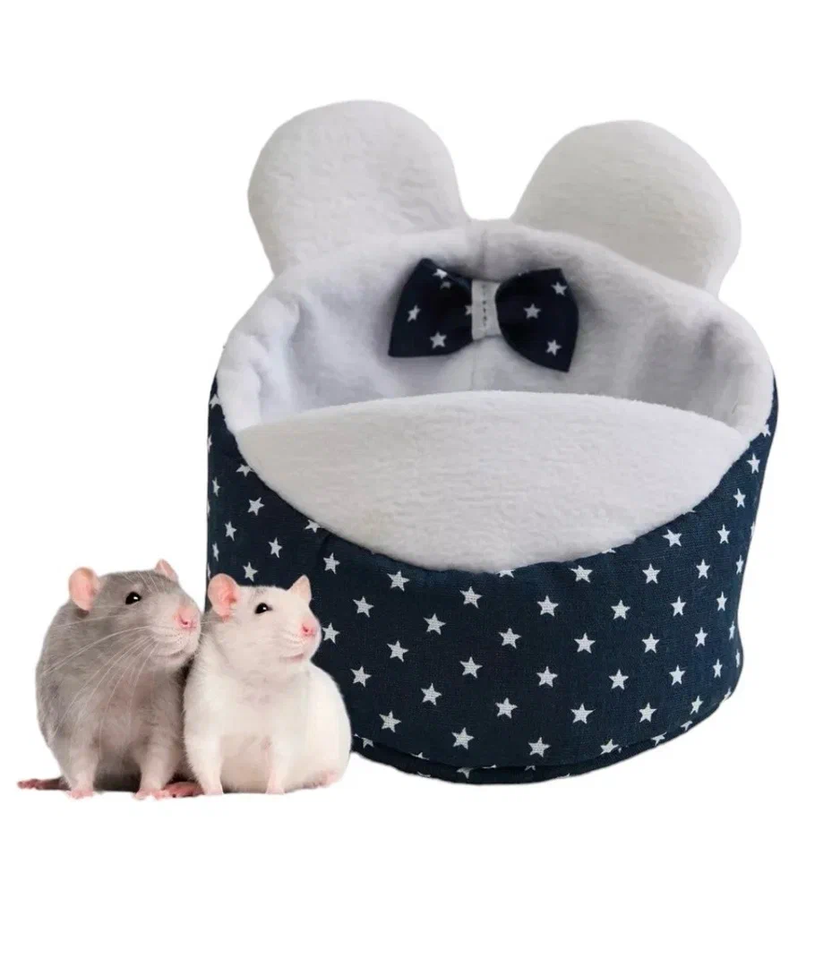 Лежанка LOORI Мини для грызунов с ушками Синие звёзды, 12*16см