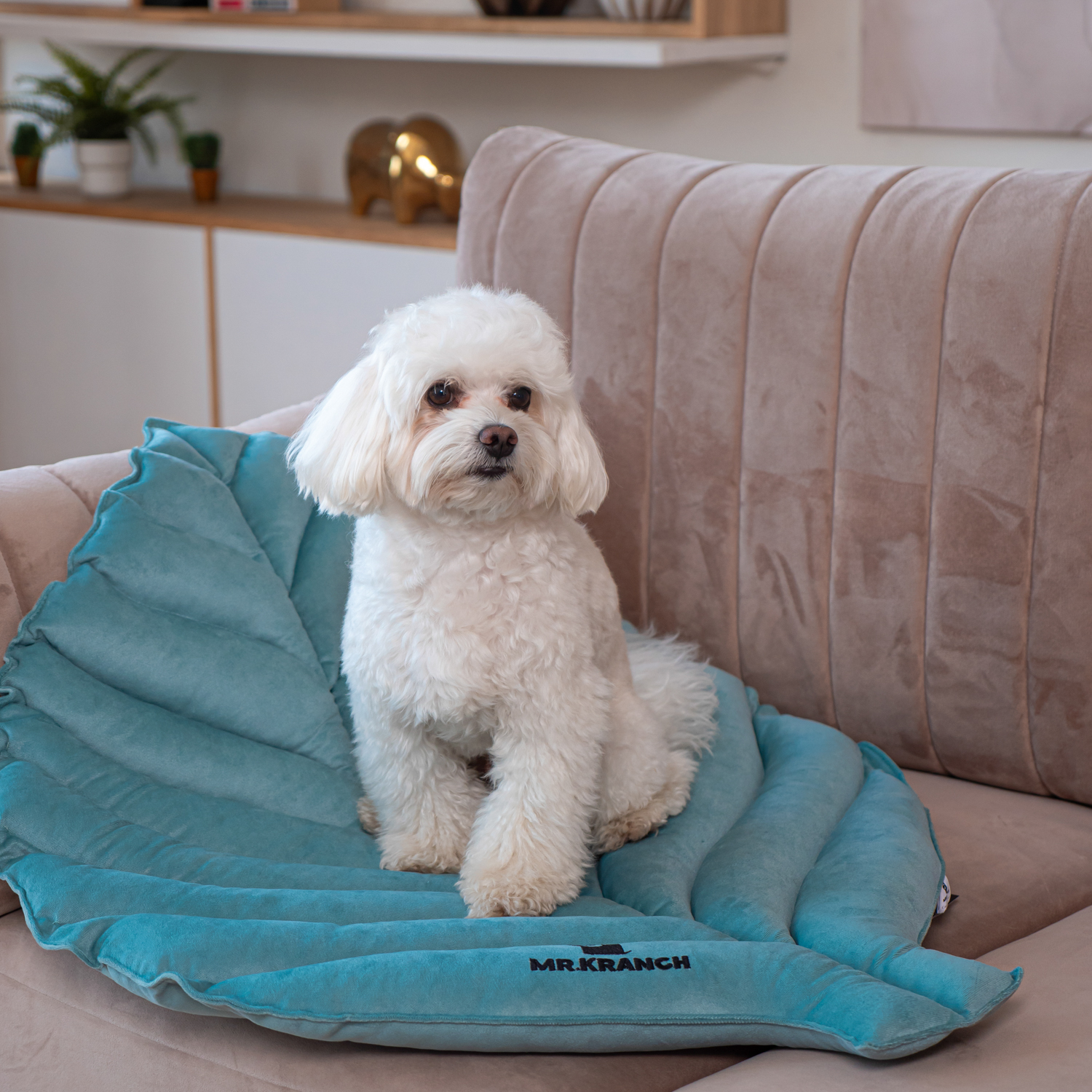 Лежанка Mr.Kranch для собак Листочек средняя, 90*65*5см, мятная