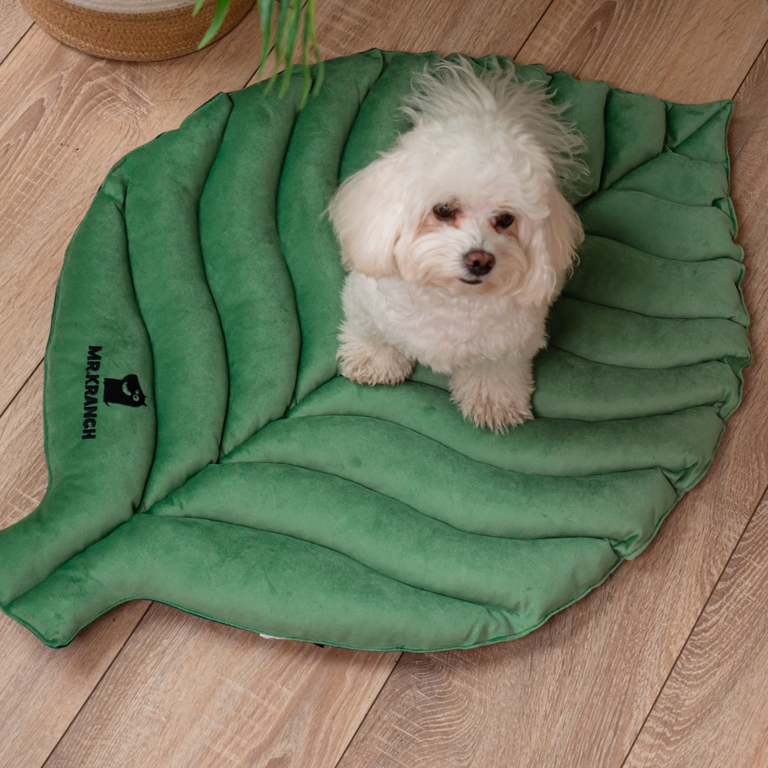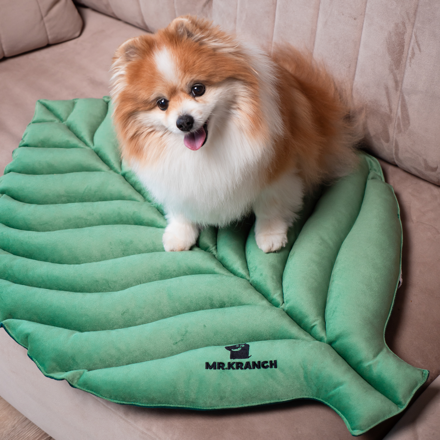 Лежанка Mr.Kranch Листочек двусторонняя для собак Зеленая, 90*65*5см