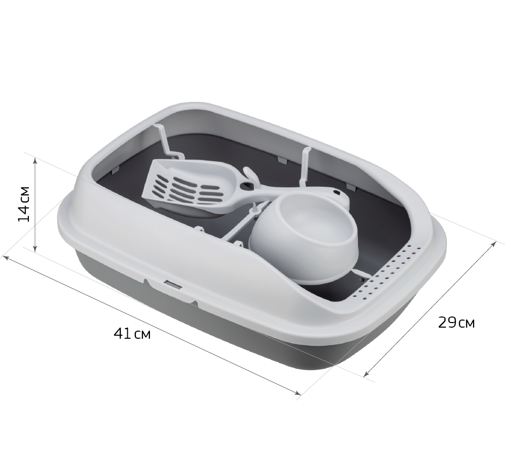 Лоток IDEA "ПЕРВЫЙ" для кошек с высоким бортом, совком и миской Смоки, 41*29см
