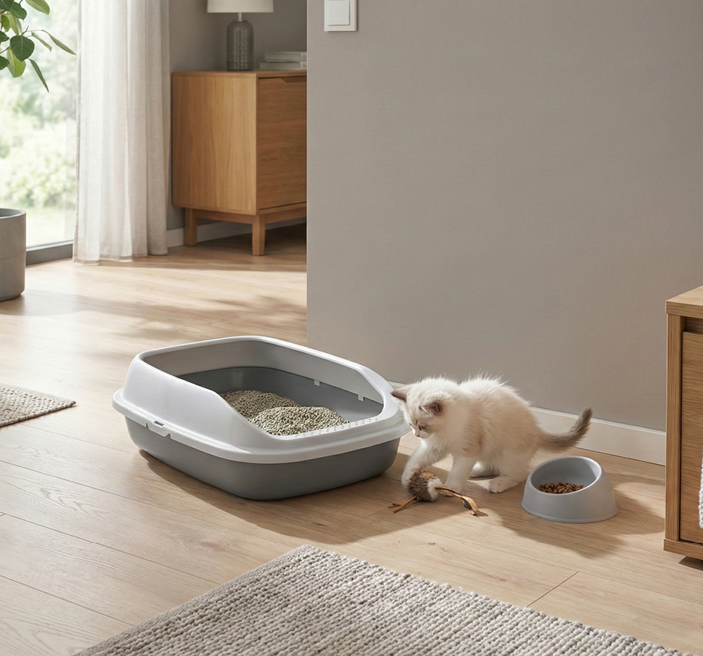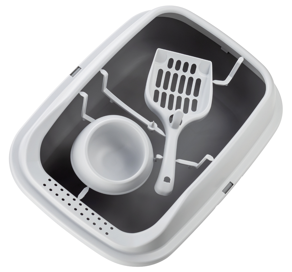 Это не просто лоток – это набор всего необходимого для первых дней Вашего малыша! В него входят лоток, рамка для лотка, миска и совочек для уборки.