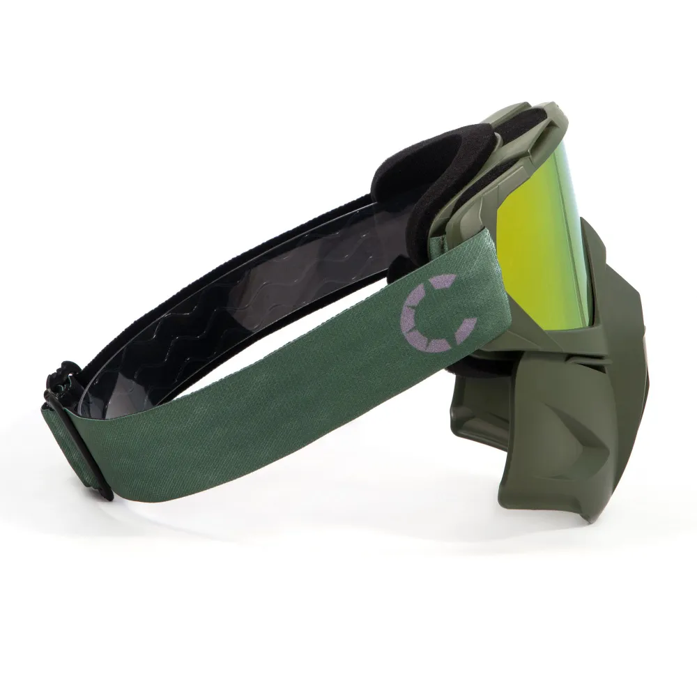 Линза chrome chamelion с УФ защитой – имеет уровень светопропускания 13%, что отлично подходит для солнечной погоды, снежного покрова и использования в дневное время. Линза с anti-fog покрытием для защиты от запотевания выдерживает различные погодные условия. Эту модель удобно надевать на шлем или носить на подшлемник или шапку. Для катания на мотоцикле или снегоходе обязательно используйте с мотошлемом.