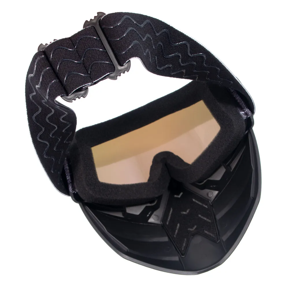 Маска СЛЕДОПЫТ M8 не скользит и не съезжает так как оснащена регулируемым ремнём с силиконовыми полосками и подходит для шлема и головы любого размера. Маска актуальна для использования летом: катание на мотоциклах, квадроциклах, картинге и велоспорта; и зимой - для катания на снегоходе, сноубординга и горнолыжного спорта.