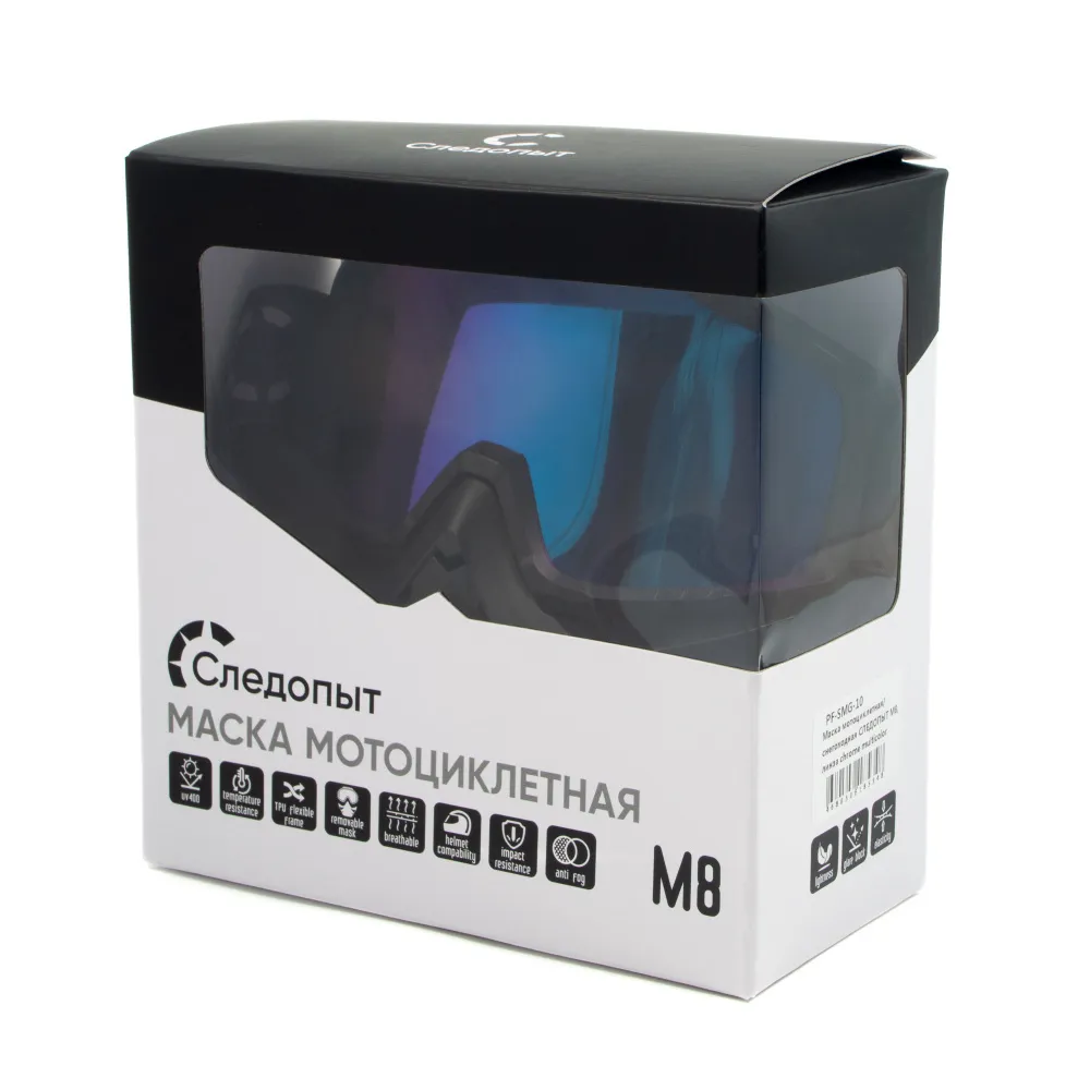 Главная Каталог Туристические товары Очки Маска мотоциклетная/снегоходная Следопыт M8, линза chrome multicolor
