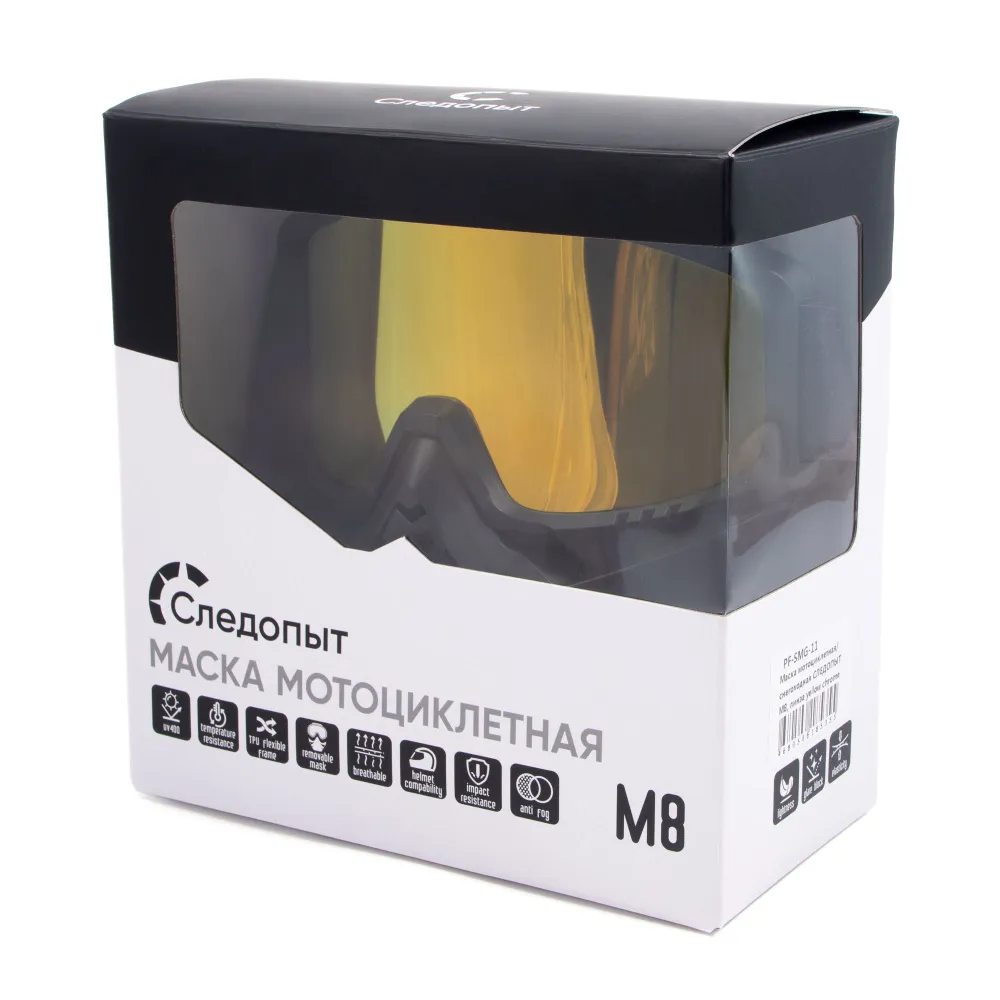 Маска мотоциклетная/снегоходная Следопыт M8, линза yellow chrome