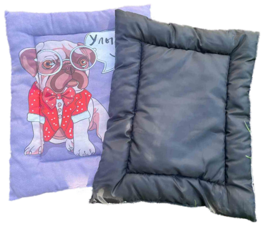 Happy Friends Матрас Пёсель Я тут — двухсторонний матрас для животных. Одна из сторон изготовлена из набивной рогожки, а другая из подкладочного материала.