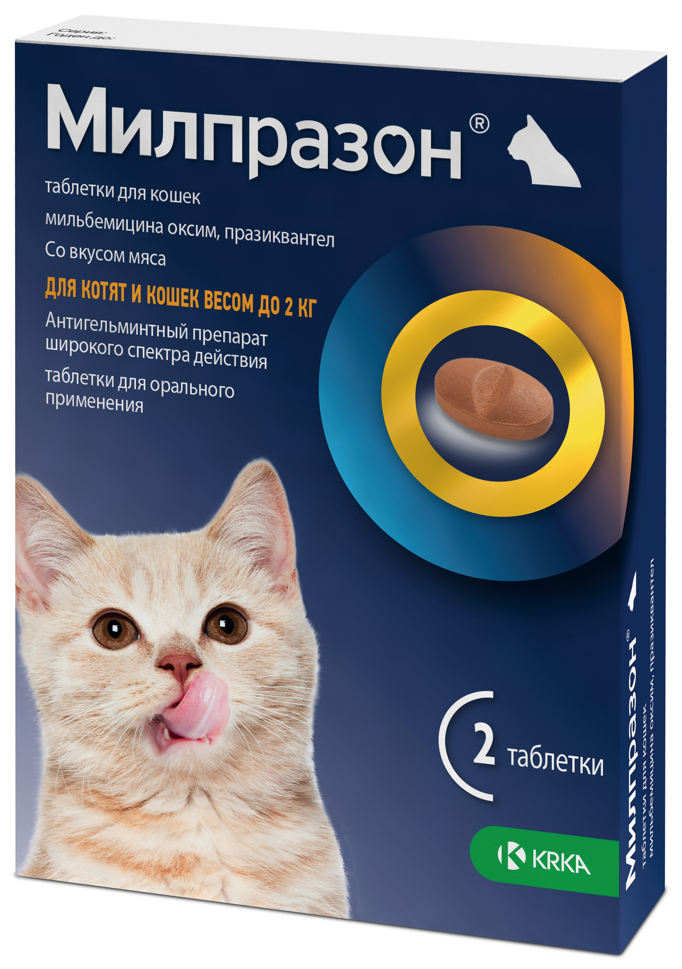 Милпразон 4 мг/10 мг, таблетки со вкусом мяса для орального применения для котят и кошек до 2 кг (мильбемицин, празиквантел)