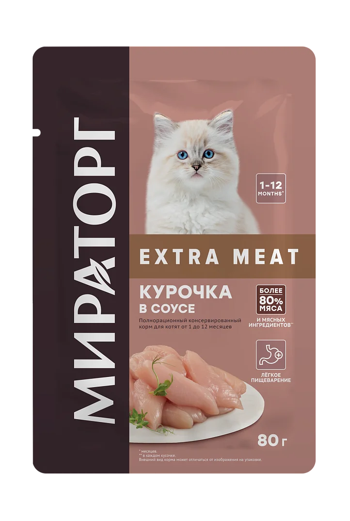 80гр Влажный корм Мираторг Winner Extra Meat для котят от 1 до 12 месяцев Курочка в соусе