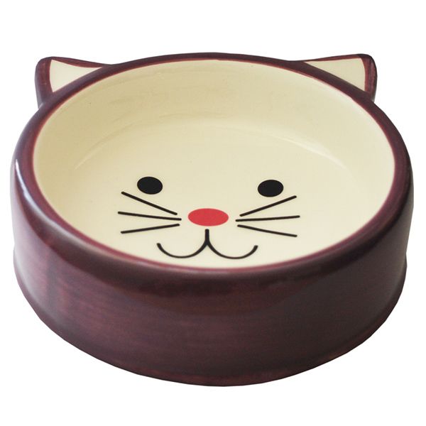 Миска керамическая N1 в форме мордочки кошки Бордовая 12,5*12,5*4,4см, 150мл
